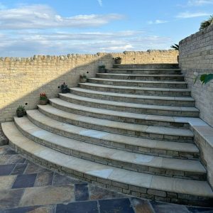 A coping is a stone that sits on top of a freestanding wall. We produce copings from high-quality sawn stone in various sizes based on customer requirements.